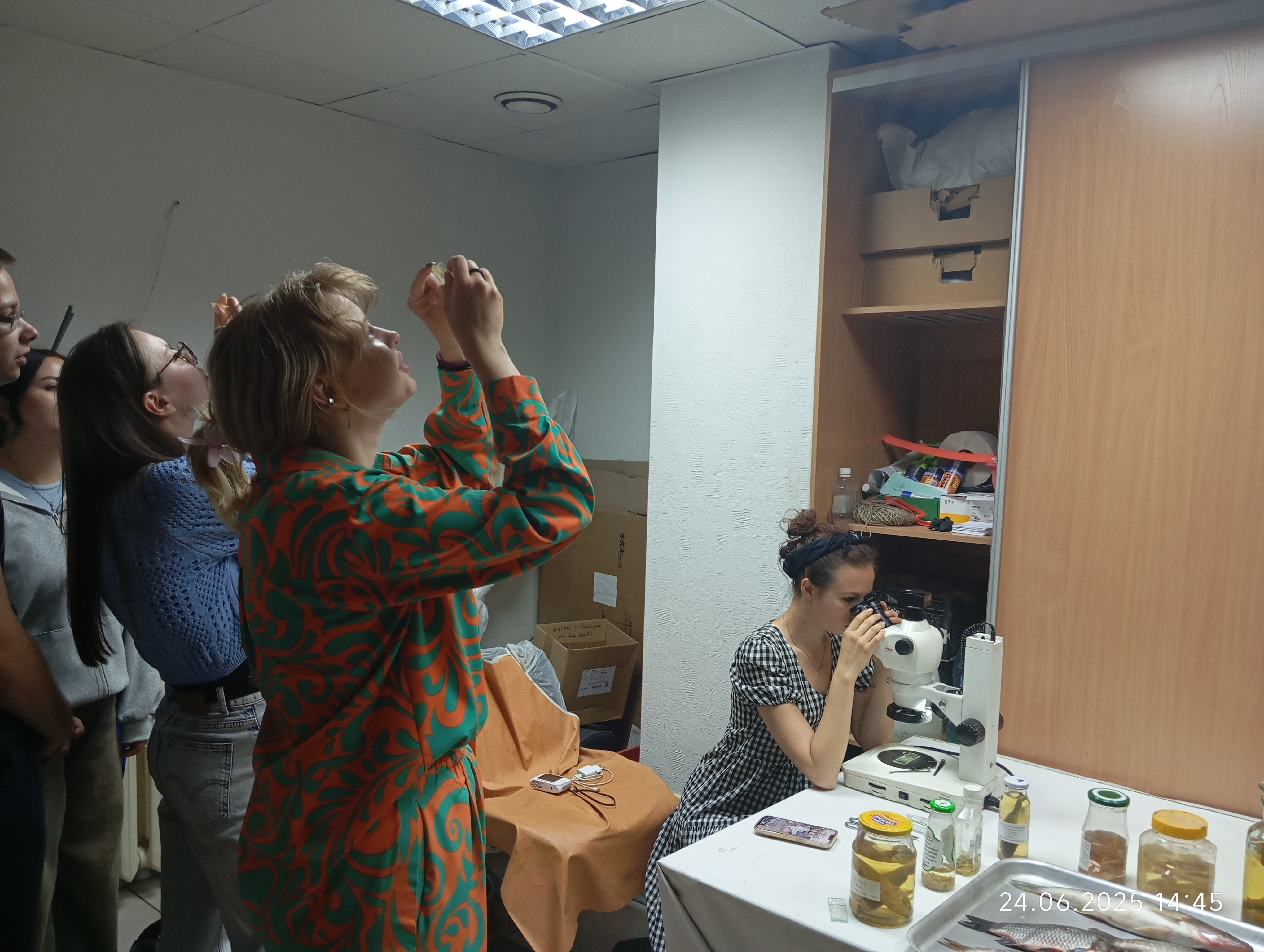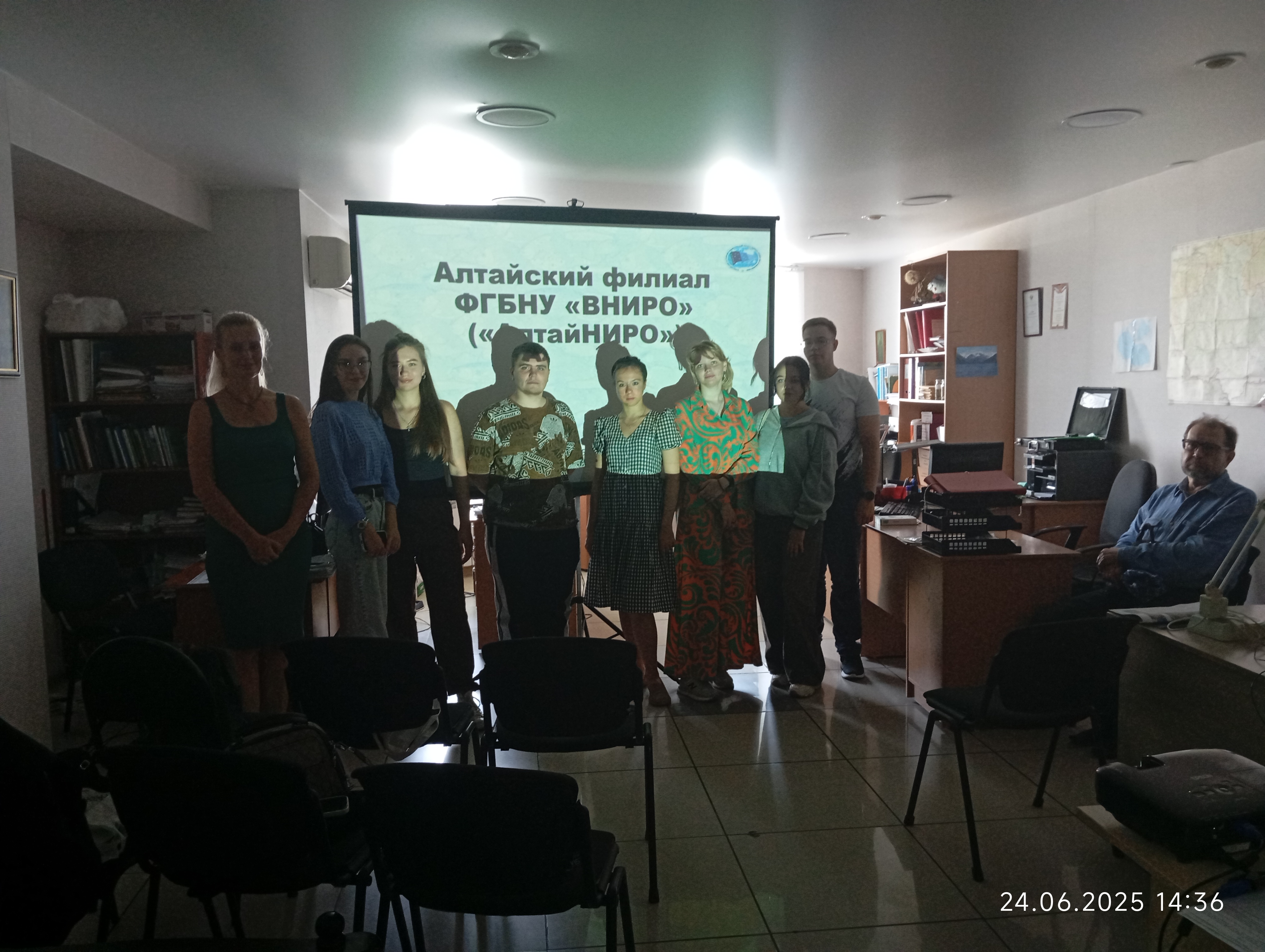 Специалисты филиала в период с 24 июня по 07 июля 2025 года провели цикл мероприятий по информационно-просветительской работе в целях формирования у студентов представления о современной науке для студентов 2 курса Института биологии и студентов 1 курса Института географии Алтайского государственного университета. Специалисты Филиала подробно поделились информацией о истории развития Института и его Филиалах, также о перспективах научной деятельности, продемонстрировали видеоролик, показывающий основные направления работы Алтайского филиала. Студенты посетили несколько лабораторий Филиала, где их ознакомили с основными направлениями работы, специфике работы ихтиологов, гидробиологов и объемах работ. Были продемонстрированы интересные экземпляры рыб, добытых в Алтайском крае и Республике Алтай. Проведен мастер-класс по определению возраста рыб по отолитам и чешуе, что безусловно вызвало живой интерес у экскурсантов. Также были подготовлены образцы промысловых беспозвоночных, на которых студенты смогли внимательно взглянуть с использованием микроскопа.